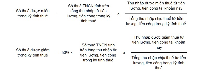 Trường hợp cá nhân vừa có thu nhập từ tiền lương, tiền công được miễn, giảm thuế theo quy định tại khoản này vừa có thu nhập từ tiền lương, tiền công khác thì số thuế thu nhập cá nhân được miễn, giảm theo quy định tại khoản này được xác định như sau: