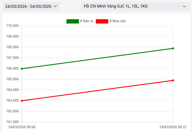 Chốt phiên giao dịch ngày 23/3, giá vàng miếng SJC niêm yết ở mức 163–166 triệu đồng/lượng (mua – bán), giảm 5 triệu đồng/lượng so với cuối tuần trước.