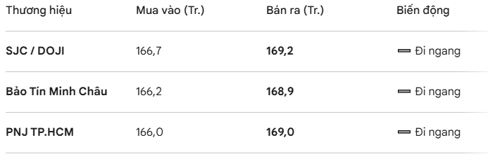 Vàng Nhẫn & PNJ: Tiếp tục neo quanh mốc 166,0 - 169,0 triệu đồng/lượng.