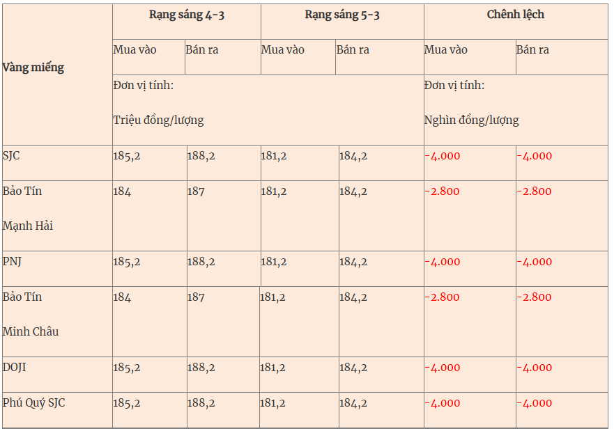 Giá vàng hôm nay 5-3: Giảm mạnh, có nên mua lúc này?