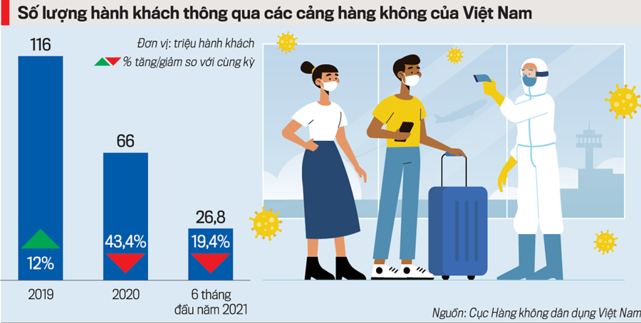 Thống kê sản lượng điều hành bay từ Tổng công ty Quản lý bay Việt Nam năm 2020 chỉ bằng xấp xỉ trên dưới 40% so với nắm 2019. Do bay ít, doanh thu Vietnam Airlines giảm hơn một nửa so với năm 2019; Vietjet trong 9 tháng năm 2020, đã lỗ khoảng 2.400 tỷ đồng; Bamboo Airways quy mô nhỏ hơn nhưng cũng phải lỗ khoảng bằng 1/3 Vietnam Airlines.