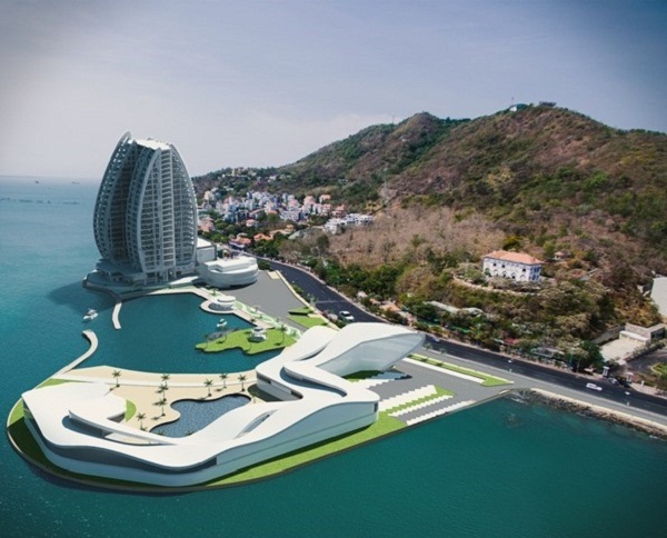 Phối cảnh công trình xây dựng Thủy cung, khách sạn tại Bãi Trước – Vũng Tàu, đang được thi công.
