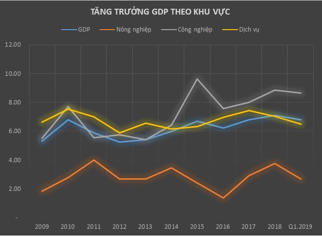 Không nằm ngoài dự đoán của nhiều chuyên gia trước đó, tăng trưởng GDP quý 1 của năm 2019 của Việt Nam vẫn được duy trì ở mức khá cao. Bên cạnh đó, các chỉ số kinh tế vĩ mô khác như lạm phát, tỷ giá tiếp tục duy trì khá ổn định. Điều này cho thấy xu hướng tăng trưởng cao của nền kinh tế vẫn đang được duy trì khá tốt.