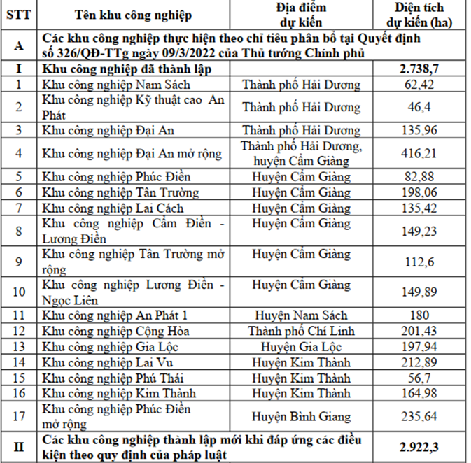 Cụ thể, Hải Dương sẽ thành lập mới 21 khu công nghiệp khi đáp ứng đủ điều kiện, tiêu chuẩn về khu công nghiệp, phấn đấu đến năm 2030, toàn tỉnh có 32 khu công nghiệp với tổng diện tích là 5.661ha.