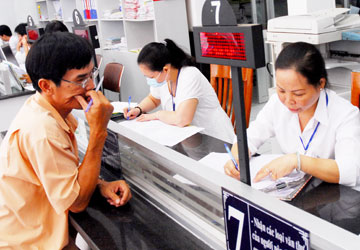 Làm thủ tục nộp tiền sử dụng đất tại Chi cục Thuế quận 5, TP.HCM. Ảnh: HTD