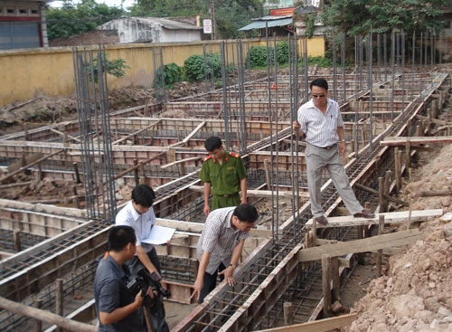 Hiện trường một vụ rút ruột công trình bị công an phát hiện ở Hà Nội.