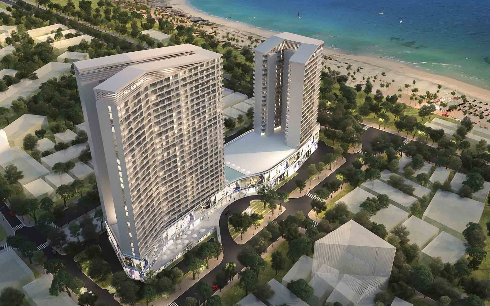 - Khối Căn hộ khách sạn (condotel) kết hợp thương mại dịch vụ tại Khu DV4: Tổ chức thiết kế với quy mô 30 tầng, hình thức mặt bằng công trình hình chữ Y để tối đa hóa phòng hướng biển.