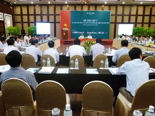 | Hội thảo toàn quốc lấy ý kiến góp ý cho dự thảo sửa đổi Luật Nhà ở và Luật Kinh doanh bất động sản do Bộ Xây dựng tổ chức tại Đà Nẵng ngày 23/8 (Ảnh: HC) |