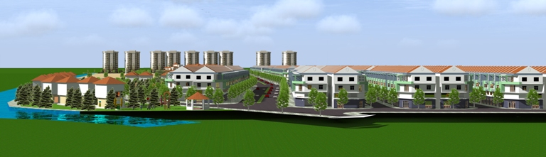 Đất ở có tổng diện tích 162.818 m2, bao gồm: Khu hỗn hợp thương mại - dịch vụ - căn hộ 12 tầng có diện tích 22.249 m2, Khu nhà liên kế có diện tích 126.829,6 m2, Khu nhà liên kế vườn có diện tích 13.739,6 m2;
