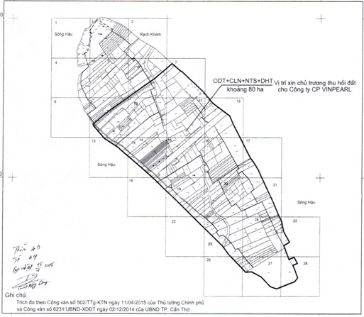 Theo đó, UBND Cần Thơ thuận quy hoạch khu đất có diện tích khoảng 80 ha, thuộc tờ bản đồ số 44, phường Hưng Phú, quận Cái Răng để xây dựng dự án sân Golf 18 lỗ tại cồn Ấu theo chủ trương được duyệt.