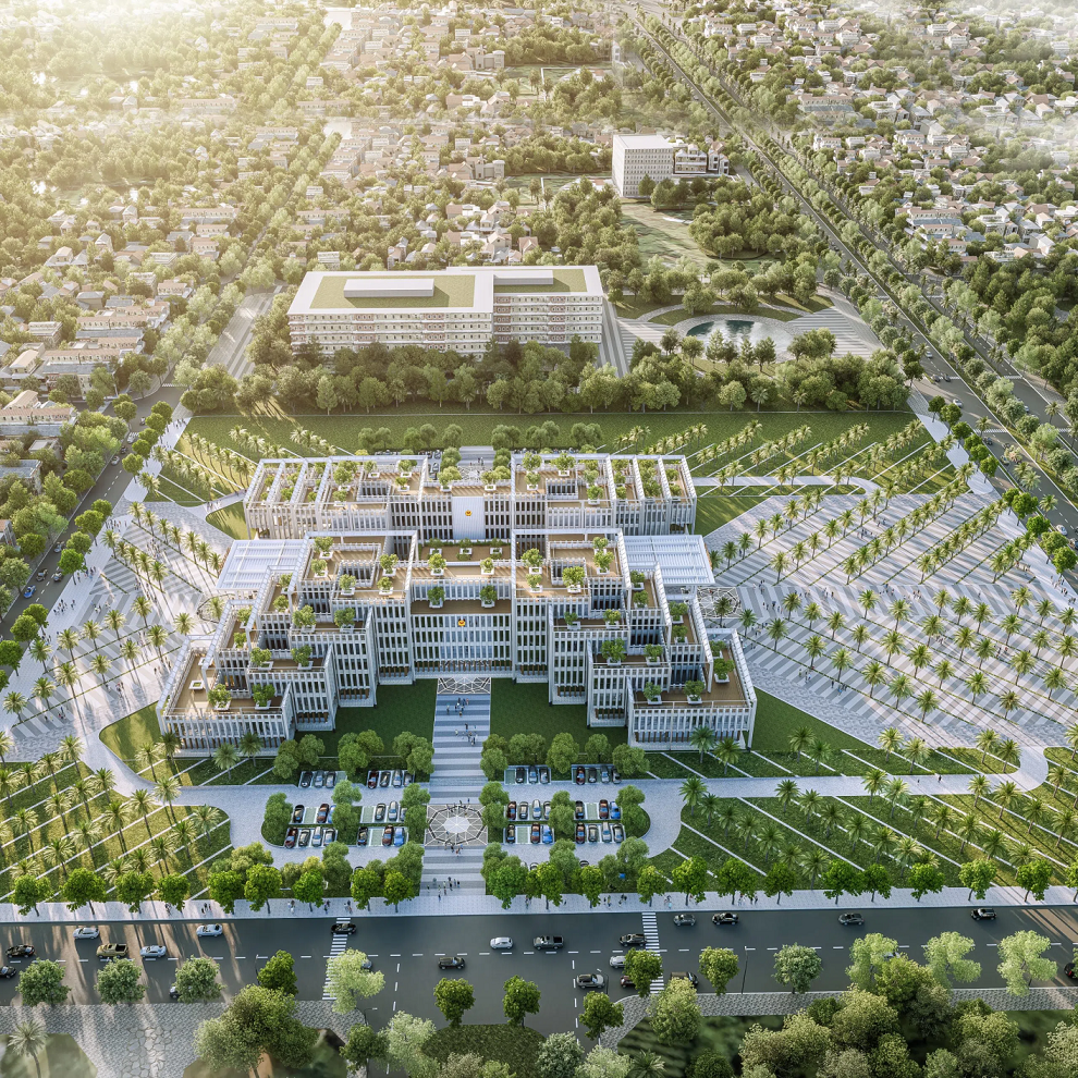 Theo phương án này, công trình có diện tích hơn 5ha, nằm trên đường 2/9 thuộc phường 11, là tổ hợp các khối nhà cao từ 1-5 tầng thiết kế theo kiểu giật cấp cao dần về phía trong lấy ý tưởng từ núi Lớn-núi Nhỏ; 4 khối nhà xung quanh là khối Đảng, chính quyền, các đơn vị sự nghiệp và lưu trữ. Trong đó, khối Đảng và chính quyền nằm ở hướng chính diện mặt tiền đường 2/9.