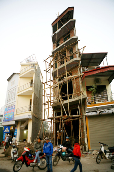 Nhà siêu mỏng, siêu méo trên đường Khuất Duy Tiến. Ảnh: Giang Huy