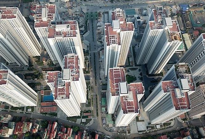 Trên địa bàn Hà Nội hàng loạt khu nhà khu chung cư chọc trời với mật độ dày đặc gây bức bí và ùn tắc giao thông.