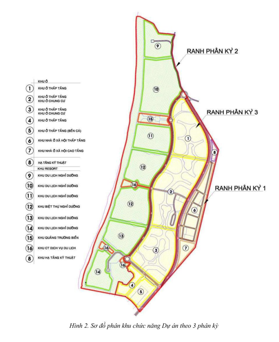 Dự án bao gồm: Khu du lịch quy mô 94,4 ha với 222 biệt thự nghỉ dưỡng, 1.565 phòng khách sạn quốc tế "5 sao - Fairmont"; Khu dân cư 79,1 ha với 550 căn biệt thự và 780 căn hộ cao cấp.