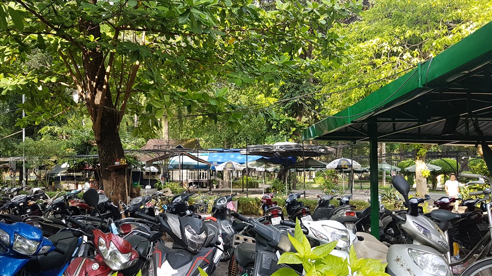 Dù bạt, xe máy che khuất tầm nhìn xanh mát bên trong công viên Tao Đàn. Ảnh: T.S