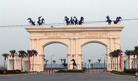 Từ sân bay Nội Bài về Hà Nội, chưa qua hết cầu Thăng Long rất nhiều người có thể bị thu hút bởi một cái cổng bề thế, lạ lùng ở giữa một không gian trống trải trước kia là cánh đồng. Cấu trúc hình thể như một khải hoàn môn và có cả một bầy ngựa đang lồng lên trên mái như sẵn sàng bay vút lên trời xanh. Chắc nhiều người từ xa đến Hà Nội - cũng như tôi - thắc mắc: "Cái quái gì thế nhỉ? Hóa ra, đó là cái cổng của "Khu đô thị Nam Thăng Long - Ciputra" đấy!