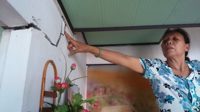 Nhà dân bị nứt do xây dựng chung cư F-Home - Ảnh: Đoàn Cường