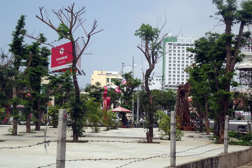 Một lô đất trống trên đường Nguyễn Văn Linh được chủ đầu tư làm nền, trồng cây xanh tạo mỹ quan đô thị được đông đảo người dân ủng hộ.