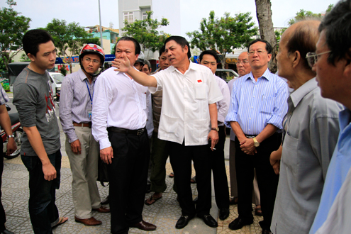 Ông Nguyễn Bá Thanh chỉ đạo chủ tịch quận Hải Châu quy hoạch lại đường kiệt thông ra đường Nguyễn Văn Linh để đảm bảo dân sinh. Ảnh: Nguyễn Đông