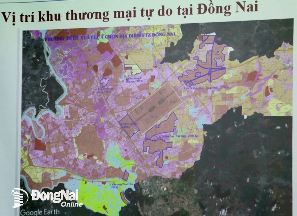 Dự kiến khu thương mại tự do tỉnh Đồng Nai sẽ được xây dựng tại Khu Logistics cạnh sân bay Long Thành, Khu công nghệ thông tin tập trung, Khu đổi mới sáng tạo tại huyện Long Thành với diện tích hơn 1.400ha; Khu công nghiệp Bàu Cạn – Tân Hiệp với diện tích hơn 2.600ha; Khu công nghiệp Xuân Quế - Sông Nhạn, diện tích gần 3.600ha; Khu cảng và hậu cần Cảng Phước An với diện tích hơn 360ha và. Tổng diện tích xây dựng khu thương mại tự do tỉnh Đồng Nai khoảng 8.000ha.