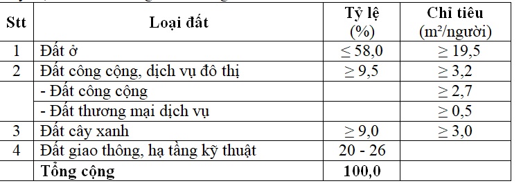 Tỷ lệ, cơ cấu sử dụng đất được giới hạn như sau