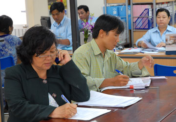 Người dân làm thủ tục đóng thuế nhà đất tại Chi cục Thuế quận 6, TP.HCM. Ảnh: HTD