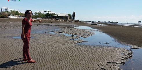 Đất ven biển Tân Thành bị sóng cuốn đi.