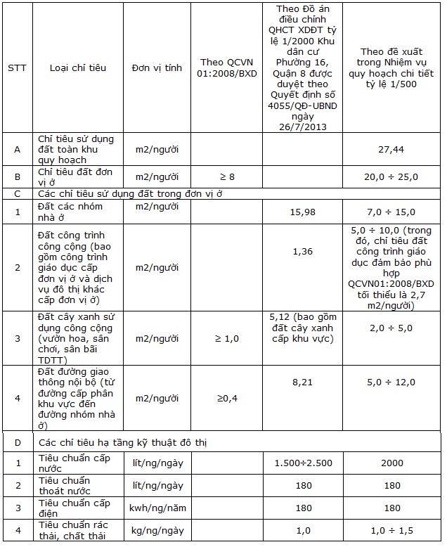 Các chỉ tiêu dự kiến về sử dụng đất, hạ tầng xã hội và hạ tầng kỹ thuật đô thị toàn khu vực quy hoạch: