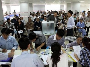 Người dân bốc thăm quyền mua nhà thu nhập thấp. (Ảnh: Tuấn Anh/TTXVN) |