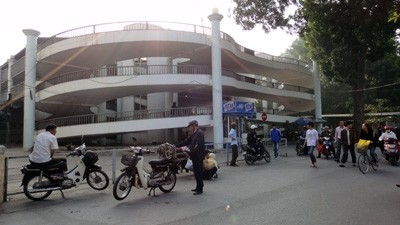 Khu để xe trên cao của Bệnh viện Bạch Mai (Hà Nội). Ảnh: Thái Anh