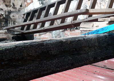 V ết tích vụ cháy trên tần nhà ông Thanh vẫn còn