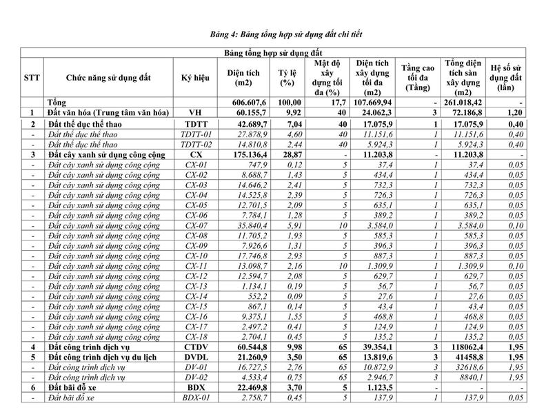 Khu thương mại dịch vụ: bao gồm khu công trình dịch vụ (dịch vụ thương mại 6ha), 2 khu công trình dịch vụ du lịch (dịch vụ thương mại 2,1 ha).