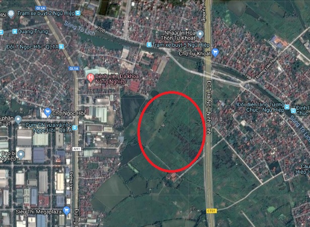 Phía Đông giáp đường cao tốc Pháp Vân - Cầu Giẽ (bao gồm tuyến đường gom có MCN = 30m); Phía Tây giáp khu dân cư và đất cơ quan xí nghiệp hiện có (bao gồm tuyến đường quy hoạch có MCN = 30m); Phía Bắc giáp khu quân đội và dân cư hiện có (bao gồm tuyến đường quy hoạch có MCN = 17,5m); Phía Nam giáp khu đất cây xanh (bao gồm tuyến đường quy hoạch có MCN = 21,25m).