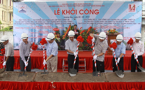 CafeLand - UBND quận Hoàng Mai vừa tổ chức khởi công xây dựng 2 khu nhà tái định cư tại ô đất ký hiệu C13/DD1 của phường Trần Phú và ô đất ký hiệu B10/ODK3 thuộc phường Yên Sở.