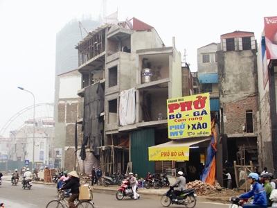 Gần đó, tại ngã tư Khuất Duy Tiến với đường Nguyễn Trãi mới hoàn thành cũng san sát nhà siêu mỏng, siêu méo. Nhiều căn nhà mặt phố có chiều ngang chỉ 2 m cũng được xây 4-5 tầng, ban công, biển quảng cáo đua nhau lấn chiếm vỉa hè. Tại nhiều ngã tư, các tuyến đường mới mở khác, nhà siêu mỏng, siêu méo xuất hiện tràn lan.