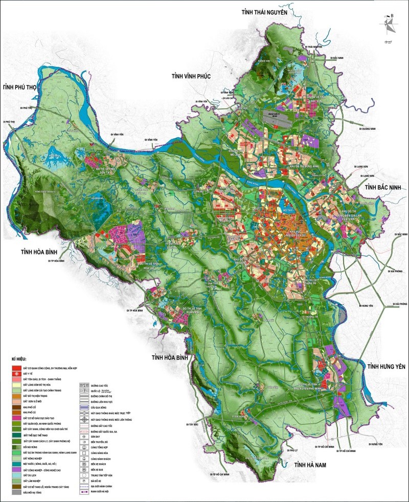 Theo quy hoạch, đến năm 2020 tổng diện tích đất tự nhiên của Hà Nội là 332.889 ha, trong đó: Đất phi nông nghiệp có diện tích 178.836 ha, Đất nông nghiệp có diện tích 152.242 ha, Đất đô thị 66.875 ha, Đất khu bảo tồn thiên nhiên có diện tích 13.546 ha, Đất khu du lịch có diện tích 12.802 ha và 1.811 ha đất chưa sử dụng.