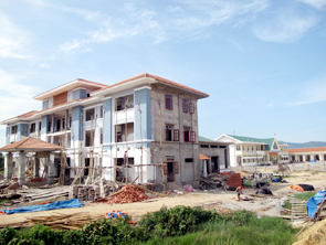 Hệ thống trường học, trạm xá, trụ sở... ở khu tái định cư Kỳ Phương đang gấp rút hoàn thành. |