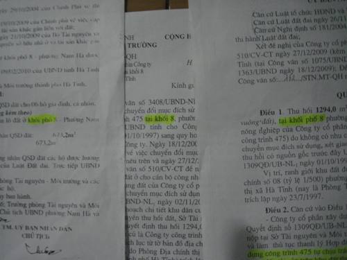 Khối phố trưởng khối phố 6, phường Nam Hà, TP. Hà Tĩnh khẳng định: "Việc cấp 8 lô đất tại khối phố cho cán bộ Công ty 475, tôi và cả phường đều không hề hay biết".