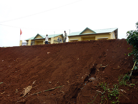 | Nguy cơ sạt lở nhà tái định cư. Ảnh: trung kiên. |