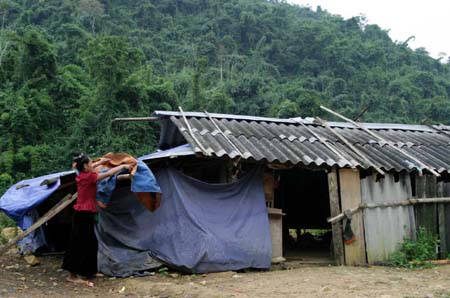 Chị Lò Thị Pành, 33 tuổi , đang sửa sang lại lán trước khi mùa đông lạnh giá về.