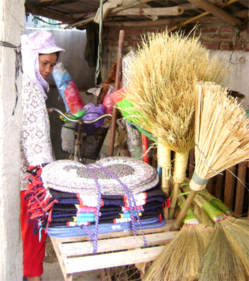 Chưa được cấp đất dịch vụ để sản xuất, kinh doanh, chị Vương Thị Hà ở thôn Phú Vinh cùng hàng nghìn nông dân xã An Khánh đành đi bán hàng rong kiếm sống.