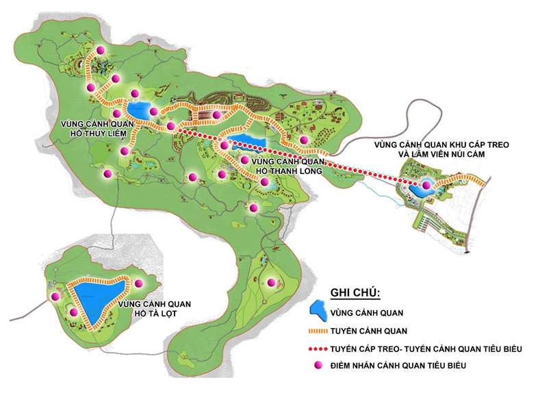 Đơn vị tư vấn cũng đề xuất phân chia chức năng sử dụng đất thành nhiều khu khác nhau như trung tâm hút khách trên đỉnh đồi, làng văn hóa – sự kiện, khu du lịch nông nghiệp và ruộng bậc thang trồng thảo dược, khu chăm sóc sức khỏe – nghỉ dưỡng, khu cắm trại sinh thái, khu mua sắm – ẩm thực – chợ đêm, cùng trục giao thông chính dành cho xe, xe điện và đi bộ. Cách tiếp cận này cho thấy Núi Cấm không chỉ được nhìn như một điểm hành hương, mà đang được tính toán để trở thành một tổ hợp du lịch đa lớp, có khả năng kéo dài thời gian lưu trú và tăng chi tiêu của du khách.