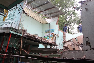 Bà Phùng Thị Kim Con cho biết, khi đó bà bị ốm và đang nằm trên gác 2, rất may con trai bà đã phát hiện và nhanh chóng bế mẹ ra khỏi nhà, trước khi căn nhà bị sụt nền tầng 1 và đổ ập tầng 2 xuống, toàn bộ đồ dùng của gia đình bị vùi trong đống đổ nát.