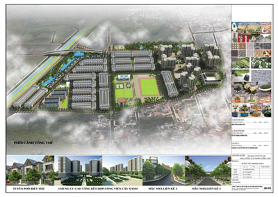 Khu nhà ở liên kế bố trí dọc theo các trục đường phố chính; Khu nhà ở biệt thự bố trí ven khu vực hồ điều hòa phía Tây dự án; Chung cư cao tầng bố trí tại phía Đông dự án kết nối khu phía Tây và KDC hiện có. Các công trình dịch vụ công cộng, công viên cây xanh được bố trí xen kẽ giữa các khu nhà ở và phân bố trên toàn khu đất. Trục giao thông có cảnh quan đẹp được xác định theo hướng Đông Tây nối khu hành chính công cộng với khu vực nhà ở.