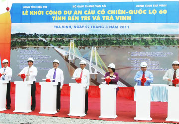 Sáng 7-3, Bộ GTVT phối hợp với UBND hai tỉnh Trà Vinh, Bến Tre tổ chức lễ khởi công xây dựng cầu Cổ Chiên trên quốc lộ 60. Tham dự buổi lễ có ông Nguyễn Sinh Hùng, Ủy viên Bộ Chính trị, Phó Thủ tướng Thường trực Chính phủ, cùng lãnh đạo các bộ, ngành trung ương, chính quyền hai tỉnh Bến Tre, Trà Vinh và đông đảo người dân địa phương.