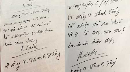 | Bút tích của bà Thủy đã nhận tiền của bên mua nền TĐC. |