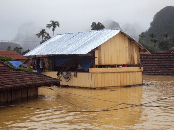Nhà nổi sống chung với lũ ở tỉnh Quảng Bình. (Ảnh minh họa: Thọ Giang/TTXVN)