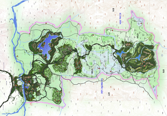 Khu V - Khu rừng, cây xanh cảnh quan, quản lý bảo vệ rừng có tổng diện tích 919,71 ha, gồm: Đường giao thông, đường mòn, điểm dừng chân, bãi đậu xe.