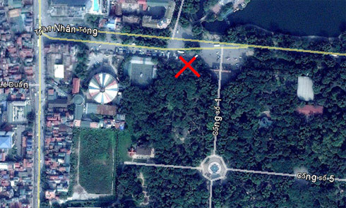 Bãi đỗ xe dự kiến nằm ở góc công viên (dấu X). Ảnh: Google Maps.