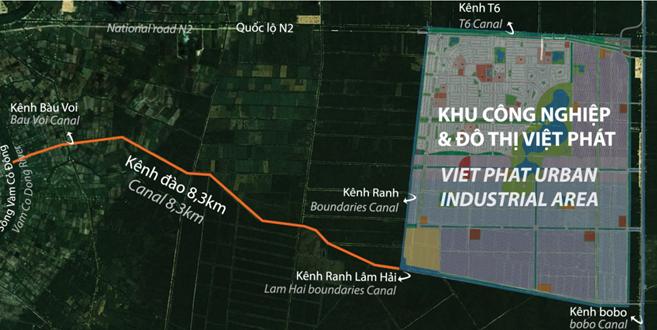 Khu công nghiệp Việt Phát có phía Đông Bắc giáp kênh Ranh giữa huyện Bến Lức và huyện Thủ Thừa; Phía Đông Nam giáp dự án Khu đô thị Việt Phát và Quốc lộ N2; Phía Tây Nam giáp kênh và khu dân cư hiện hữu cặp kênh Bo Bo.